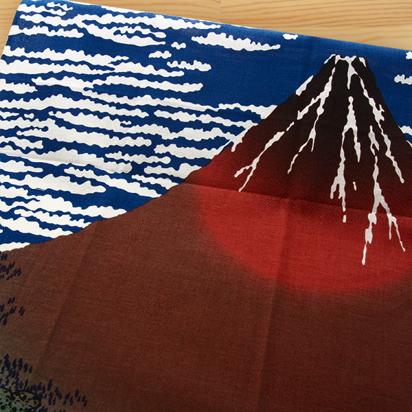 葛飾北斎の有名な「富嶽三十六景」の赤富士(凱風快晴)と、
