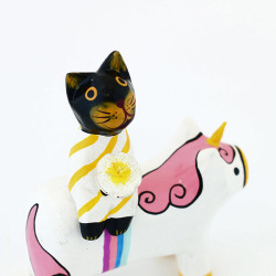 可愛いユニコーンに、愛らしい黒猫さんがお花を抱えてちょこんと乗っている