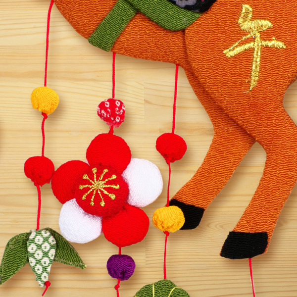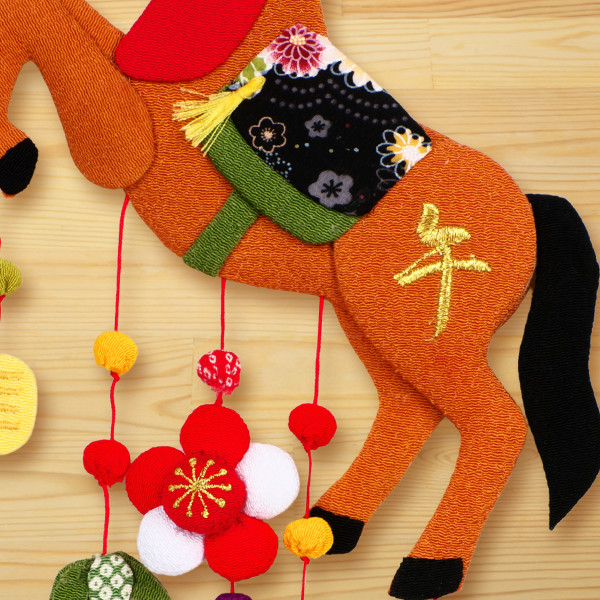 ちりめん生地で作られた、可愛い馬のつるし飾りです。