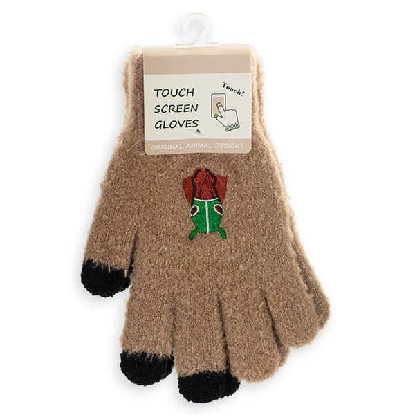 メンコをした鹿毛の競走馬が刺繍された、ふっかふかの手袋です。