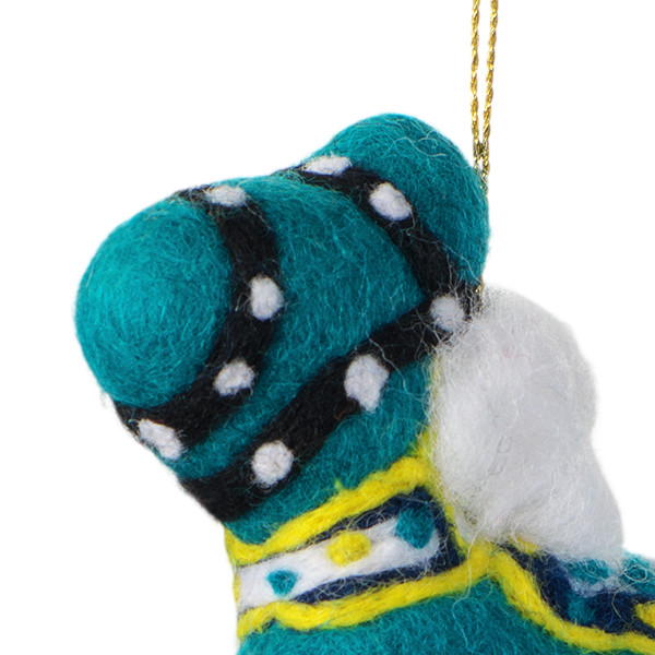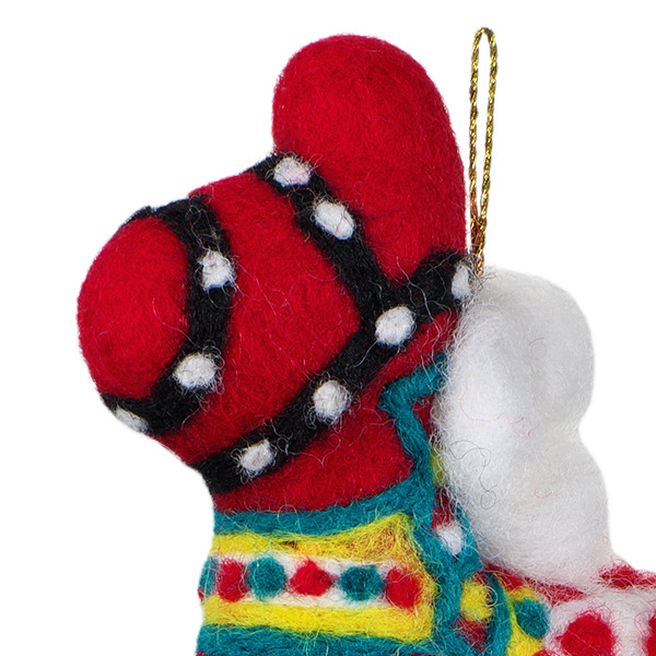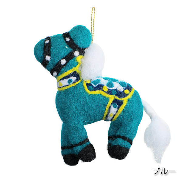 羊毛でできたふわふわ馬のクリスマスオーナメントです。