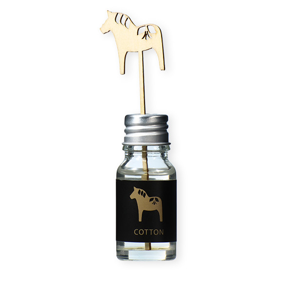 可愛らしい天然柳のお馬さんスティックが、お部屋にゆっくりと洗い立ての洗濯物のような爽やかなコットンの香りを届けてくれます。(倒れないような場所においてください)