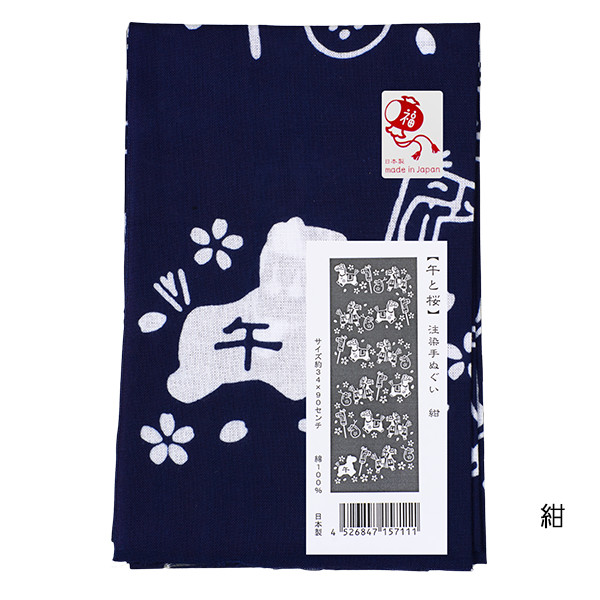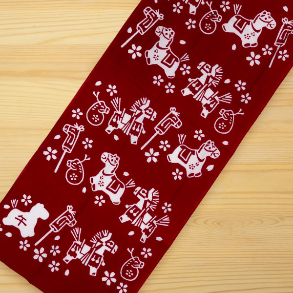 伝統技法「注染」で染め上げた、干支の手ぬぐい。いろんな和のお馬さんと梅が軽やかに仕上げられた可愛い柄です。