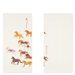 その伊予和紙に、九頭の馬が駆ける「馬九行久(うまくいく)」があしらわれた万円袋は、「すべてがうまくいく」という願いを込められる一枚です。