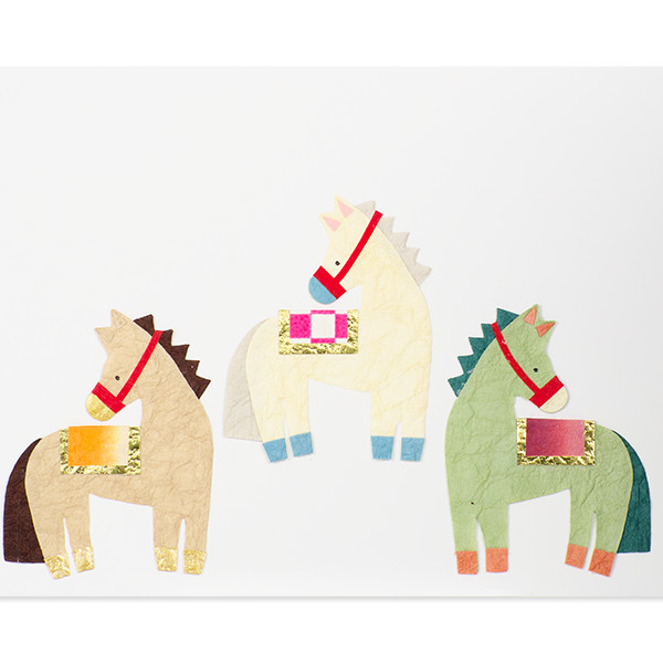 一枚ずつ丁寧に仕上げられた、馬の和紙切り絵パーツ。馬のやさしい表情や佇まいが愛らしいです。