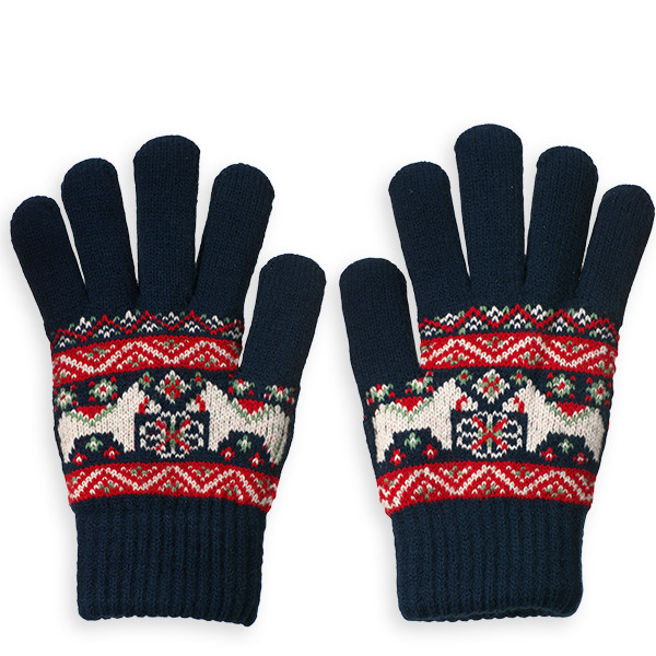 向かい合うダーラナホース柄がさりげなく馬好きを主張してくれるデザインでうれしい、あったか裏ボア手袋です。