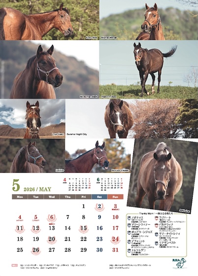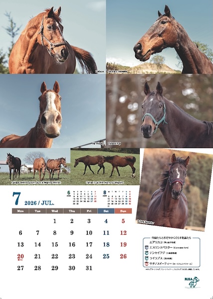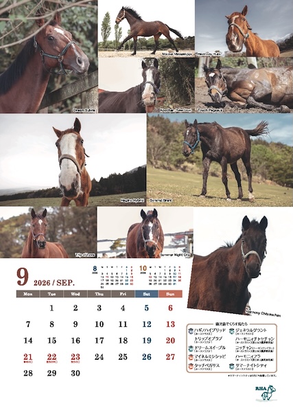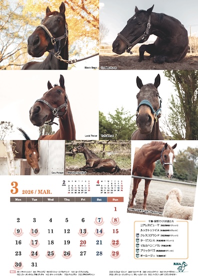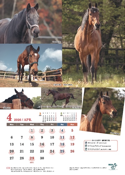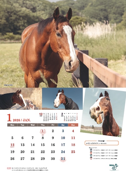 引退馬ネットのサポートホースたちを集めたA3ポスター仕様のサポートホースカレンダーも同梱しています。